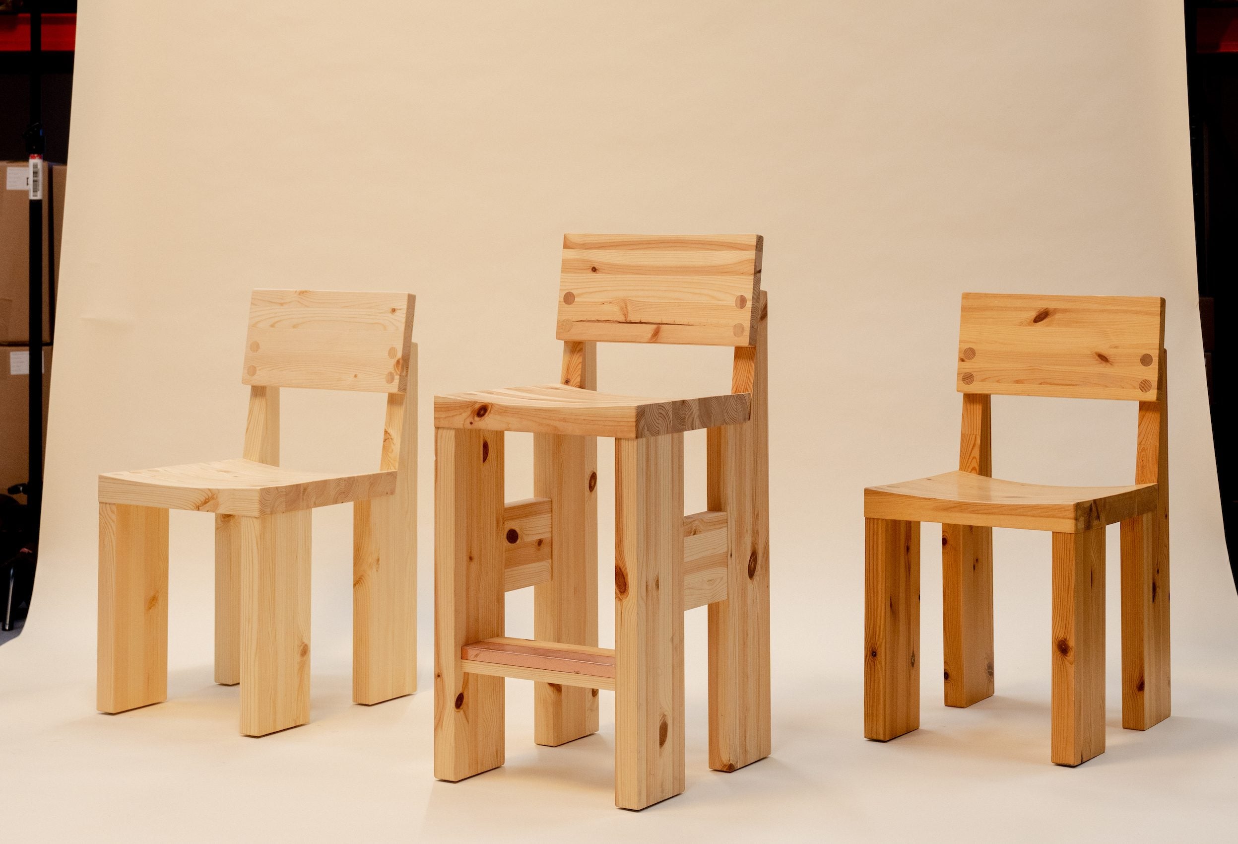 Pine is a very characterful material. As a result of the naturally occurring oils and resins, pine will change colour as it ages. Heartwood and sapwood will start aging at a different speed resulting in gorgeous stripy patterns. The colour will gradually even out and mature to a beautiful honey tone over the course of years. Pine is also a soft wood and so will naturally suffer some dents and scratches over time.