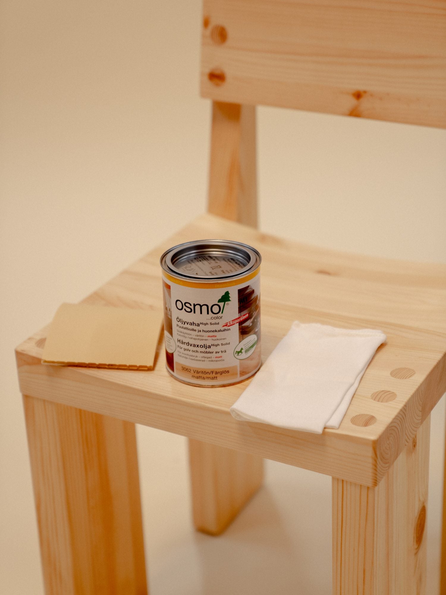 All our indoor products are made of Finnish pine (pinus sylvestris) and finished with stain-resistant, water-repellent, matte wood oil (we use Osmo Color hardwax-oil 3062 matt).