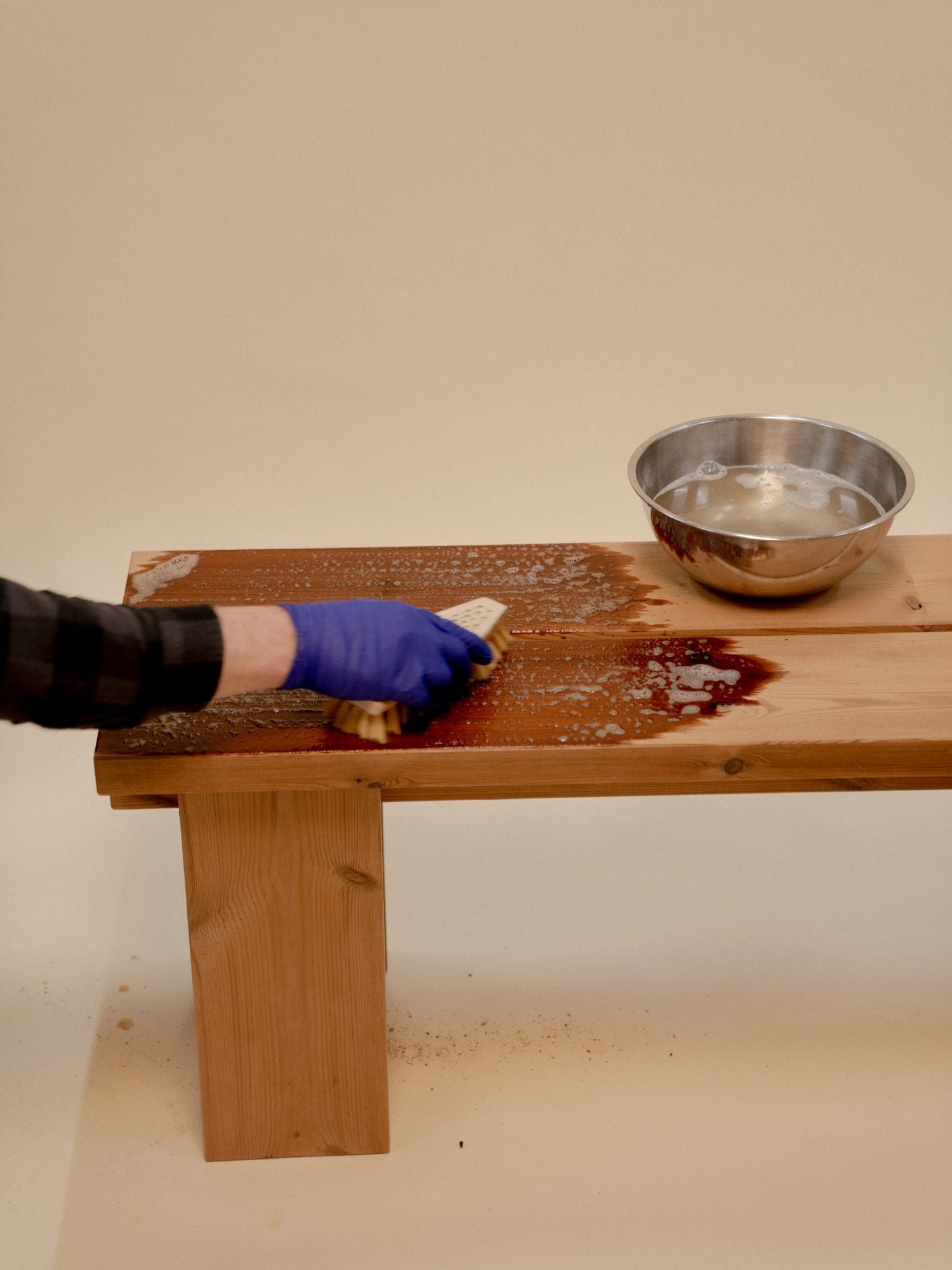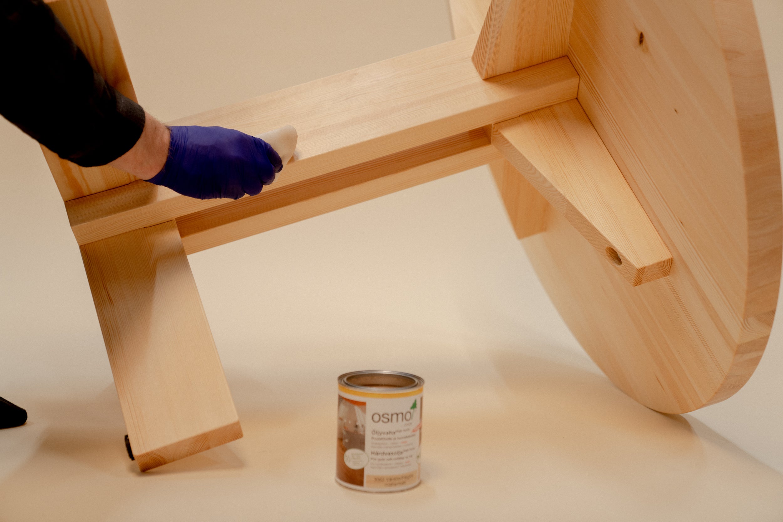 We at Vaarnii celebrate rather than hide the aging and natural characteristics of pine, and our products do not necessarily require regular maintenance. However, to keep your product in the best possible condition, you can clean it gently with a fine abrasive sanding cloth once every 2 to 5 years (we recommend using 320-grit sanding cloth). Always sand along the grain. After sanding, treat the product with matte wood oil or wax. Let the oil impregnate for 10 minutes and wipe the rest off. Use a clean cloth along the grain to dry and polish the surface. You can also treat the product with matte wood oil or wax without sanding, but we recommend sanding because it cleans stains and small scratches and helps the oil or wax to absorb.