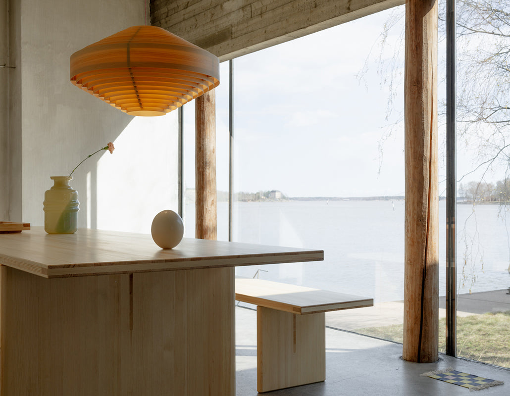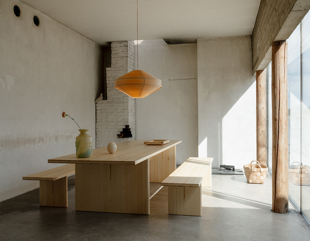 The Kolmio Dining Table is a vast expanse of pine. "This really is a wooden table" says Cecilie Manzen.