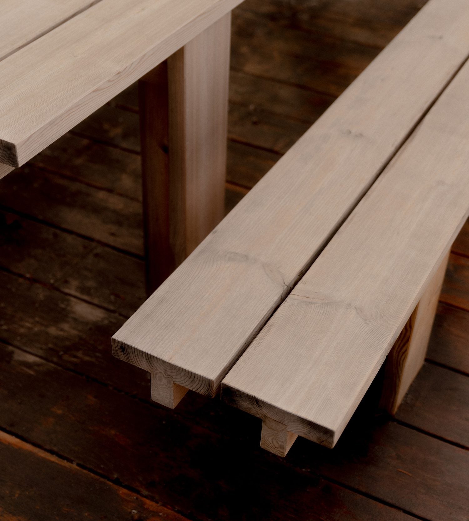 Our outdoor products are made of heat-treated pine, Lunawood ThermoWood®. Thermowood is a non-toxic material produced by using only heat, and steam. The heat treatment makes the furniture weatherproof, so no other surface treatment is required.