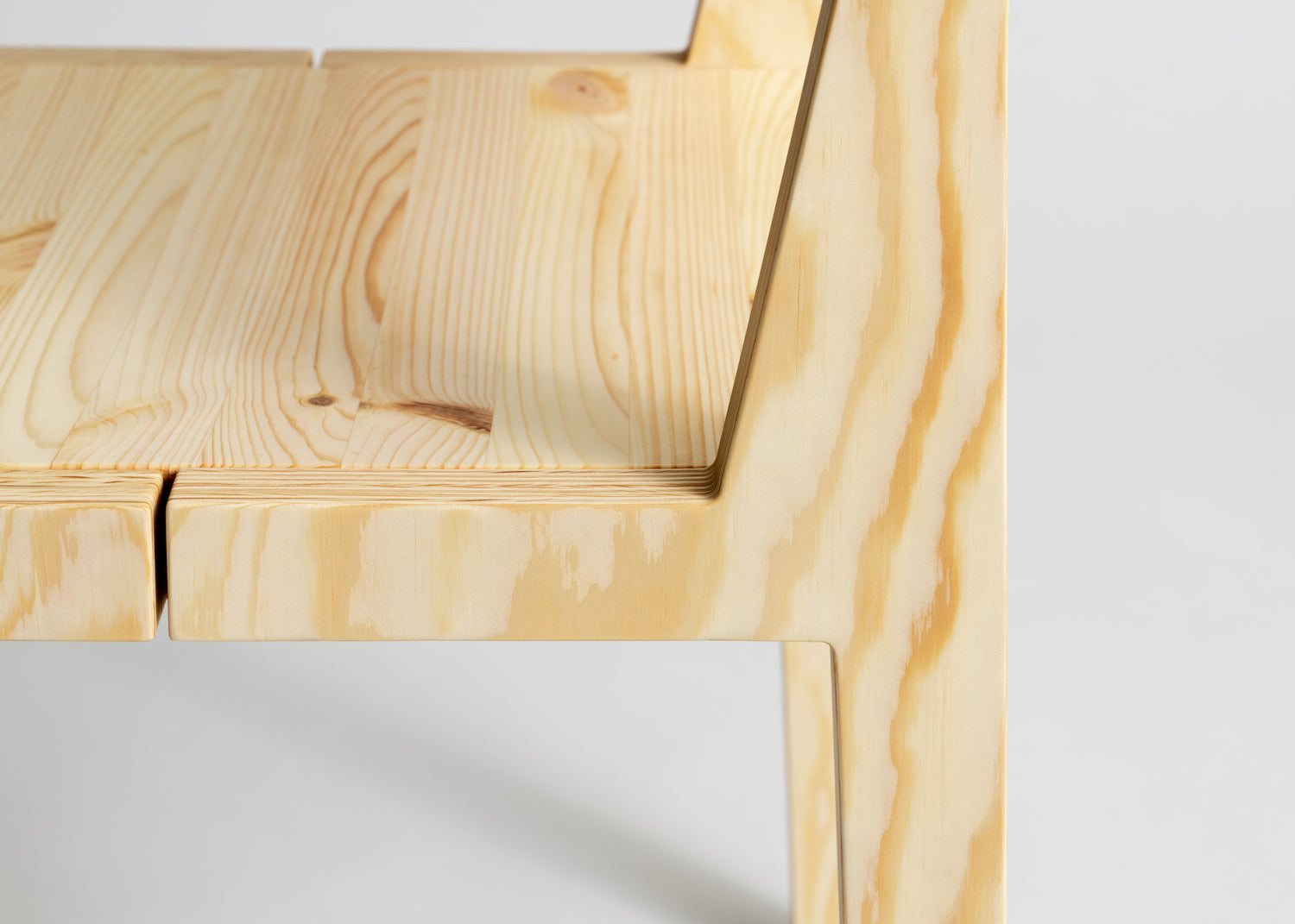 Maasto’s uncomplicated silhouette is formed by combining plywood sides for strength, reduced bulk, and simplicity of construction with a solid pine seat and back for durability.